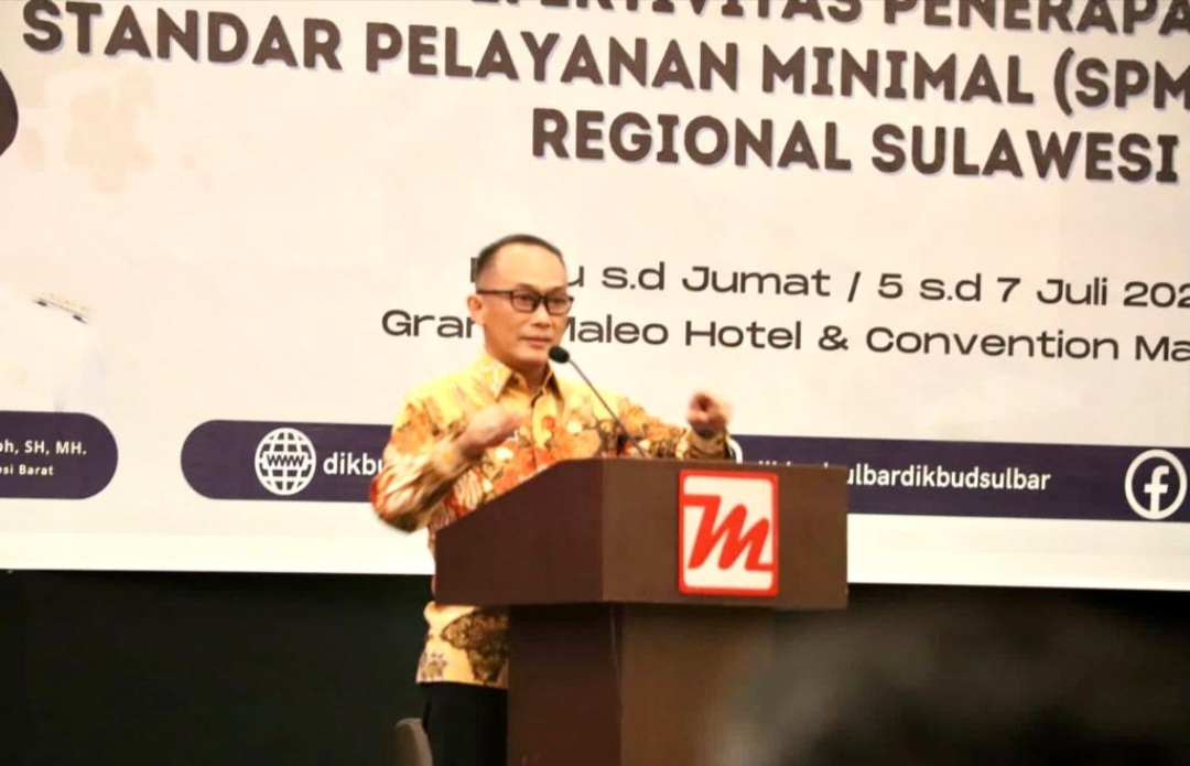 Hal itu disampaikan Pj Gubernur Sulbar Prof. Zudan Arif Fakrulloh saat membuka kegiatan Pembukaan Rapat Koordinasi Efektivitas Pelaksanaan Penerapan SPM Pendidikan Regional Sulawesi di Grand Maleo Hotel Mamuju, Rabu 5 Juli 2023 malam.