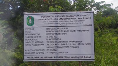 “Seperti halnya kegiatan proyek peningkatan Jalan Nanga Mahap-Nanga Taman Lanjutan dari pengerjaan sebelumnya yang berada di kabupaten Sekadau yang dimenangkan oleh CV. Cemara Selaku Pelaksana kegiatan proyek dengan nilai Pagu ANGGARAN RP.9.400.000.000 (Sembilan Milyar Empat Ratus Juta)