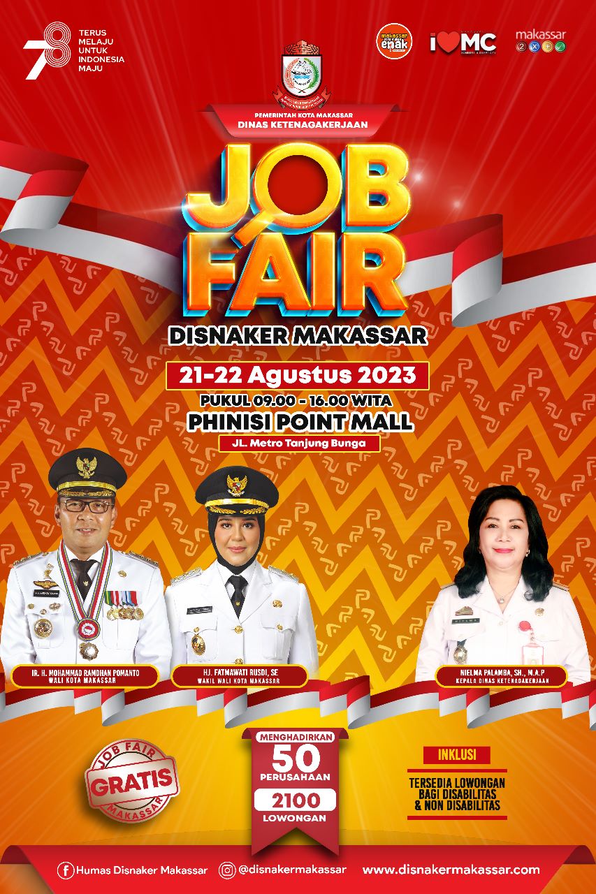 BN Online Makassar, – Pemerintah Kota (Pemkot) Makassar akan menggelar kembali job fair atau bursa kerja. Yang rencananya akan diselenggarakan pada 21 – 22 Agustus 2023 berlokasi di Phinisi Point Mall.