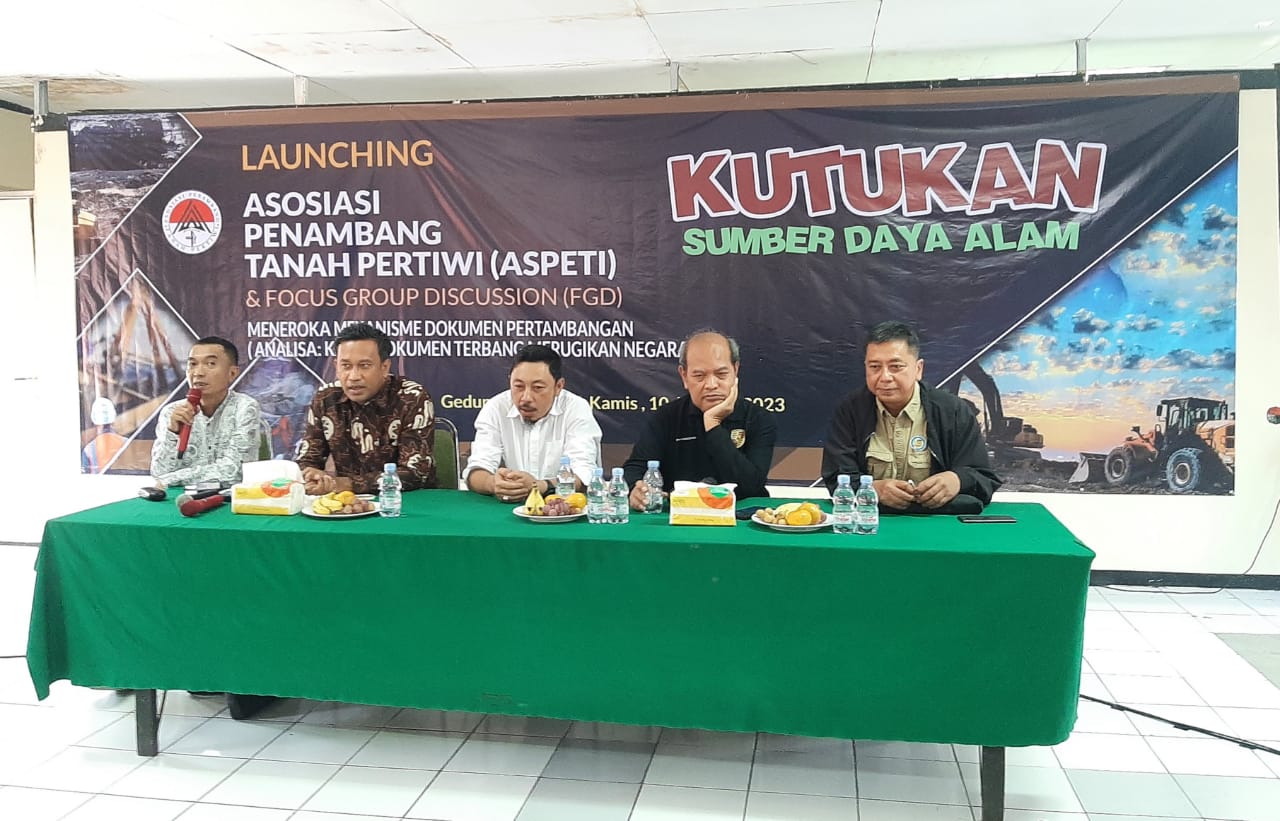 BN Online, Jakarta – Asosiasi Penambang Tanah Pertiwi (ASPETI) menggelar acara Forum Group Discussion (FGD) “Kutukan Sumber Daya Alam” Meneroka (mengeksplor) mekanisme dokumen pertambangan (Analisa Kasus Dokumen Terbang Merugikan Negara Rp 5,7 Triliun) pada Kamis 10 Agustus 2023, di Gedung Joang 45, Menteng, Jakarta Pusat. Acara yang digelar usai launching atau peluncuran ASPETI ini, dihadiri sejumlah praktisi maupun pelaku usaha di bidang pertambangan tanah air.