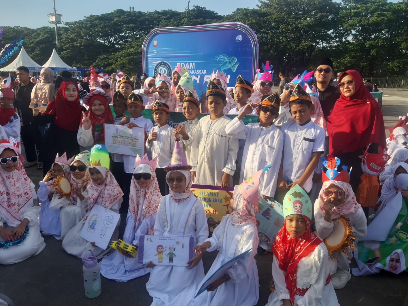 BN Online, Makassar—UPT SPF SD Negeri Tanggup Patompo 2 yang berlokasi di Jl. Cendrawasih No 383, Kecamatan Mamajang Kota Makassar mengikuti dan meriahkan kegiatan Karnaval 1 Muharram 1445 Hijriah.