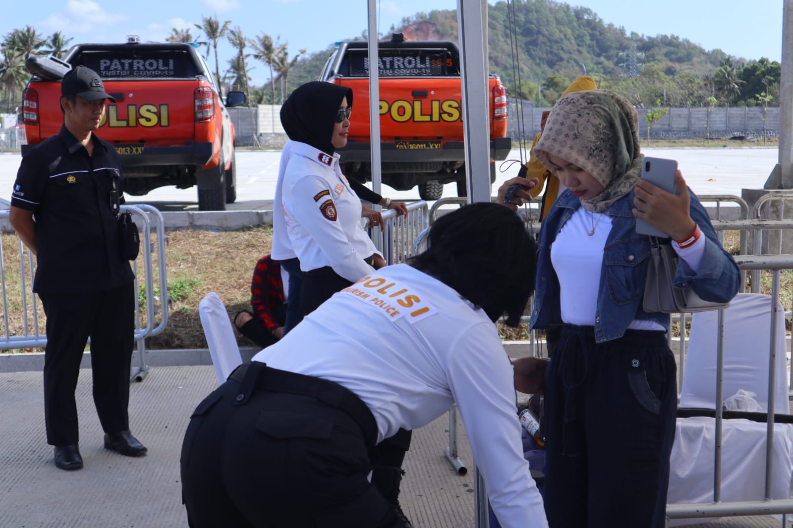 Bidik Nasional.id – Mataram – Satgas Preventif Sekdor Tiketing dari Direktorat Pengamanan Obyek Vital (Pamobvit) Polda NTB, dipimpin Perwira Pengendali (Padal) Sedtor Tiketing Sirkuit Pertamina Mandalika Ipda I Gusti Ngurah Darmayuda, Minggu (13/8/2023), melakukan pemeriksaan ketat terhadap badan dan barang bawaan penonton, dalam rangka memastikan keamanan even FIM ARRC 2023.