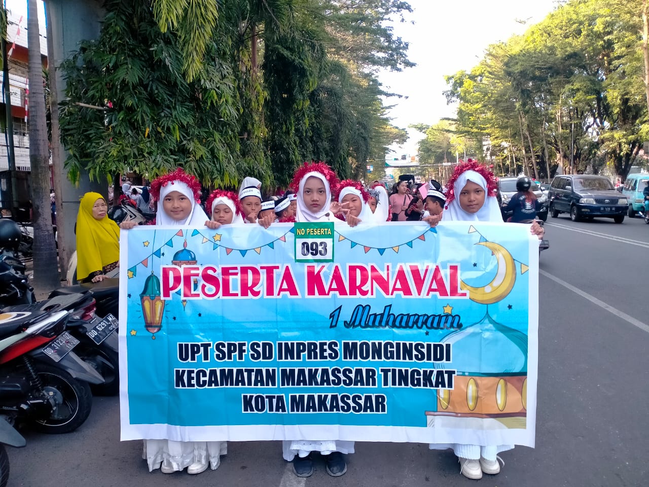 BN Online, Makassar-–UPT SPF SD Inpres Mongisidi yang berlokasi di Kecamatan Makassar Kota Makassar mengikuti dan meriahkan kegiatan Karnaval 1 Muharram 1445 Hijriah yang dibuka oleh Kadis Pendidikan Kota Makassar Muhyiddin.