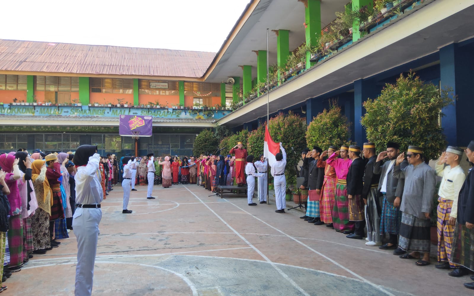 BN Online, Makassar—UPT SPF SMP Negeri 4 Makassar, Peringati Hari Ulang Tahun Republik Indonesia (HUT RI) ke-78, yang di Gelar Upacara Bendera di Lapangan Upacara UPT SPF SMPN 4 Makassar, Rabu 17 Agustus 2023.