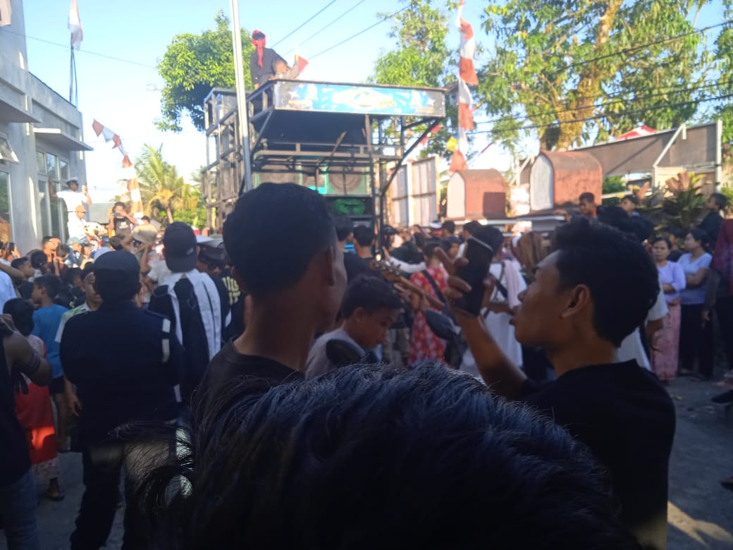 Terlihat ribuan masyarakat yang hadir ikut joget saat mendengarkan lagu 17 Agustus Tahun 45. yang ditampilkan dalam karnaval tersebut.