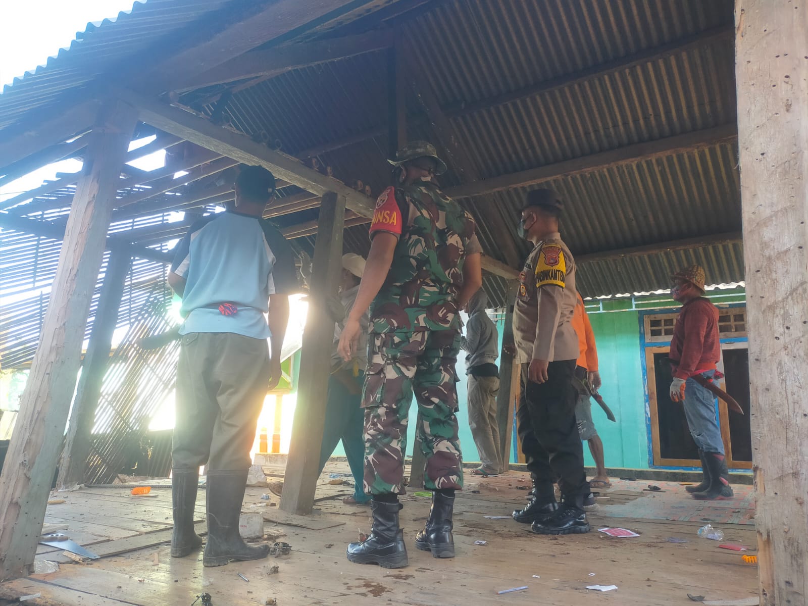 Sinergitas TNI dan Polri Gotong Royong Bongkar Rumah Panggung Milik Warga Desa Seteluk Atas Sumbawa Barat