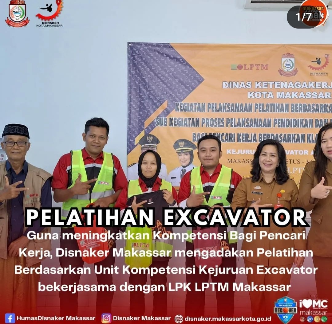 BN Onlune, Makassar—Kepala Dinas Ketenagakerjaan Kota Makassar Nielma Palemba, SH, M. AP, didampingi Kepala Bidang Pelatihan Kerja Andi Hikma Rezkiani Nur, SH, M. S. P, membuka pelaksanaan kegiatan pelatihan berdasarkan Klaster Kompetensi, Pelatihan Operator Alat Berat Excavator, Selasa 29 Agustus 2023.