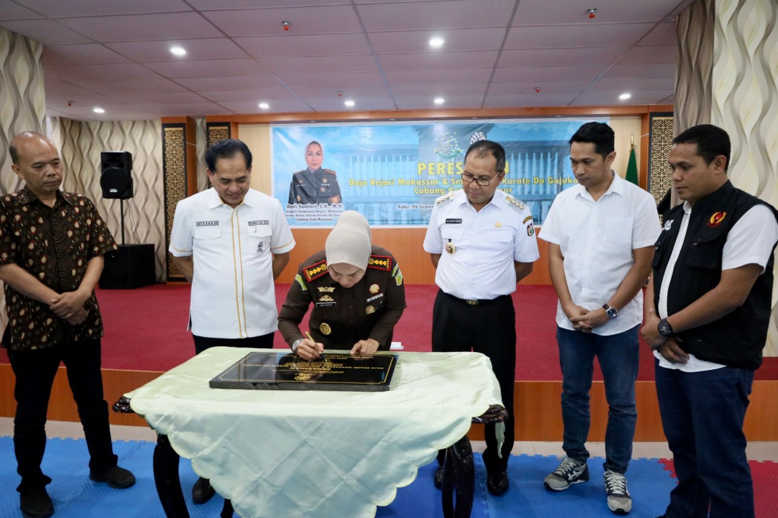 Peresmian Dojo Kejari Makassar dihadiri oleh Wali Kota Makassar Moh Ramdhan Pomanto, di Aula Kejari Makassar Jalan Amanagappa, Rabu (6/09/2023).