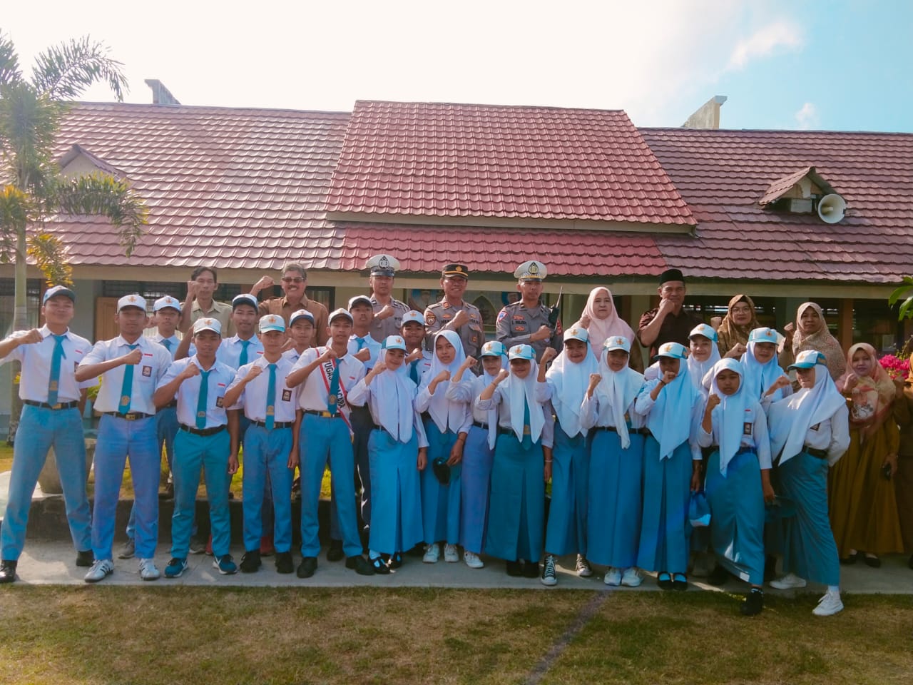 Kapolsek juga memberikan himbauan kepada siswa siswi saat menggunakan kedaraan bermotor dijalan raya agar tetap mematuhi peraturan Lalu Lintas seperti menggunakan helm standar SNI, patuhi rambu – rambu lalu-lintas, jangan ugal-ugalan dan juga jangan menggunakan knalpot brong.
