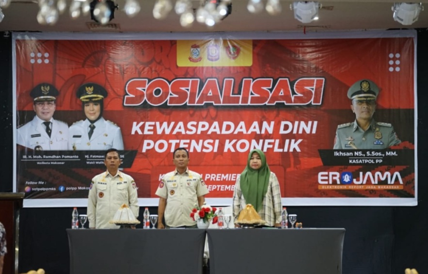 Ditempat yang sama Ihsan Samad Kabid Binmas Satpol PP Makassar mengatakan, giat ini terlaksana sesuai Surat Keputusan Walikota Makassar Nomor 2723/300.05/Tahun 2023 tanggal 02 Agustus 2023 tentang “Pembentukan Panitia Kegiatan Sosialisasi Kewaspadaan Dini Potensi Konflik” yang akan dilaksanakan selama 2 hari, mulai pada tanggal 07 dan 14 September 2023 di Hotel Karebosi Premier Hotel (Ex. Condotel).