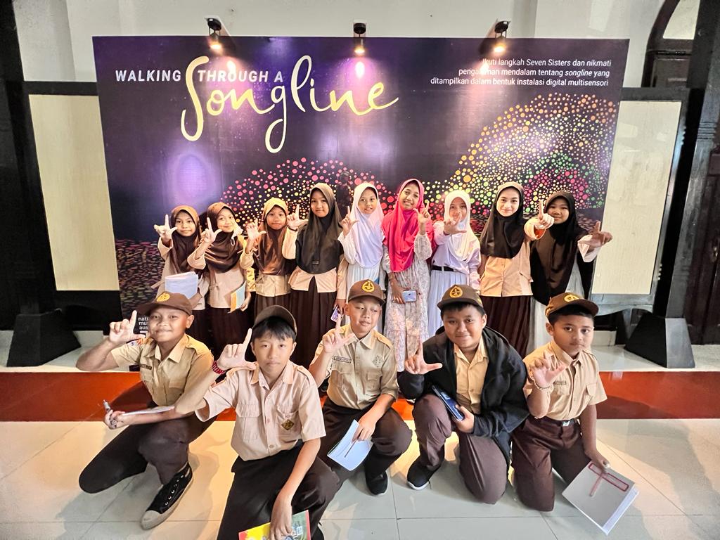UPT SPF SD Negeri Bulurokeng yang terletak di Kecamatan Biringkanaya Kota Makassar mengikuti Pameran ‘Walking Through A Songline’ yang dilaksanakan di Museum kota Makassar, Jumat (22/09/2023).