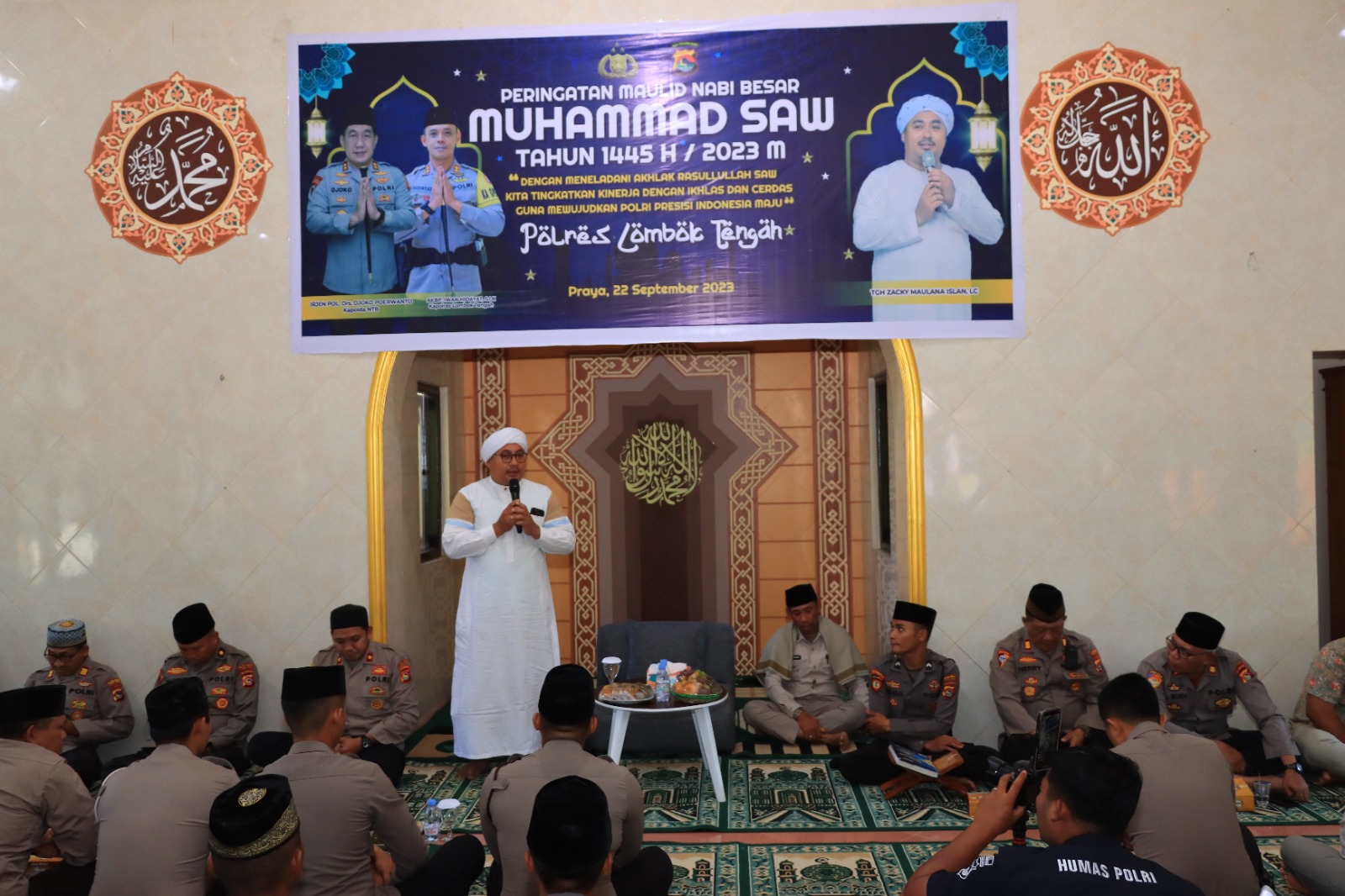 Peringatan maulid Nabi Muhammad SAW yang diadakan Polres Lombok Tengah mengundang penceramah TGH. Zacky Maulana Islan, LC dengan mengusung tema “Dengan Meneladani Akhlak Rasulullah SAW Kita Tingkatkan Kinerja Dengan Ikhlas Dan Cerdas Guna Mewujudkan Polri Presisi Indonesia Maju”.