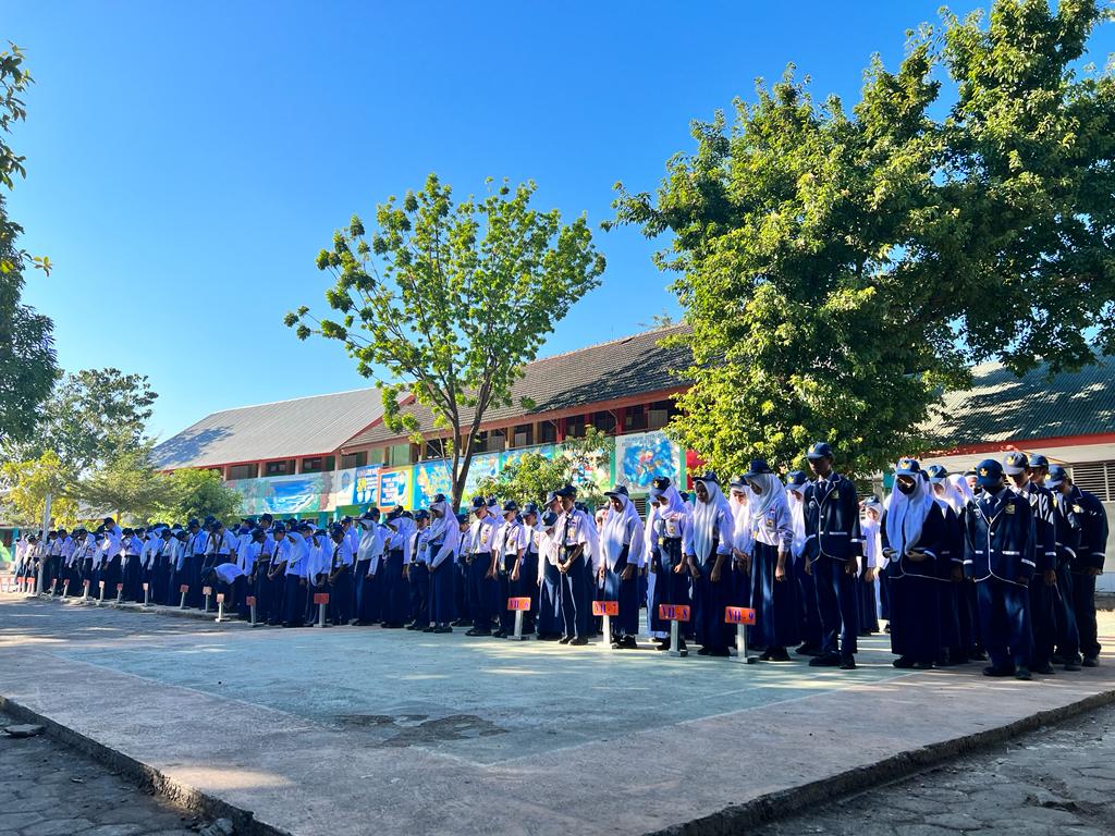 “Nampak para guru guru dan segenap siswa-siswi mengikuti upacara dengan khidmat. Kepala Sekolah juga megajak setiap warga sekolah untuk tetap mempertahankan dan mengamalkan nilai-nilai Pancasila serta menjaga keutuhan Negara Republik Indonesia.