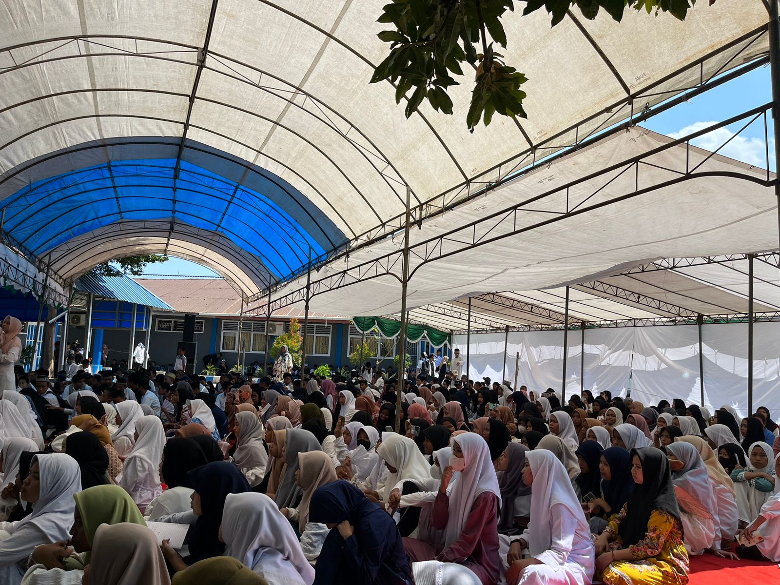 Acara tersebut berlangsung hikdmad dengan diiringi dengan marawis dari perwakilan Siswa UPT SPF SMPN 24 Makassar.
