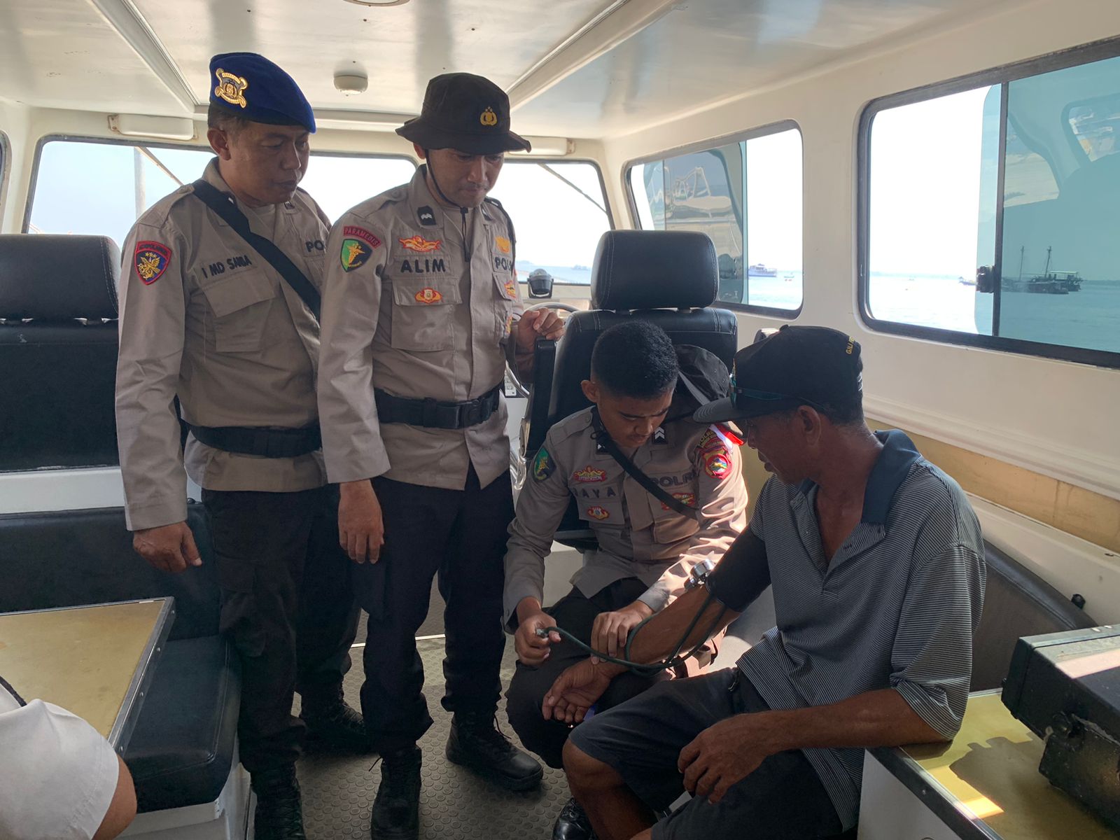 Adapun pemeriksaan yang dilakukan yaitu pelayanan kesehatan terhadap masyarakat yang memiliki penyakit ringan , jika penyakitnya tidak bisa di tangani di atas kapal Polisi 2012 Direktorat Polair, maka akan di buatkan rujukan ke Rumah Sakit Bhayangkara guna mendapat perawatan yang maksimal. Ulas Henni.