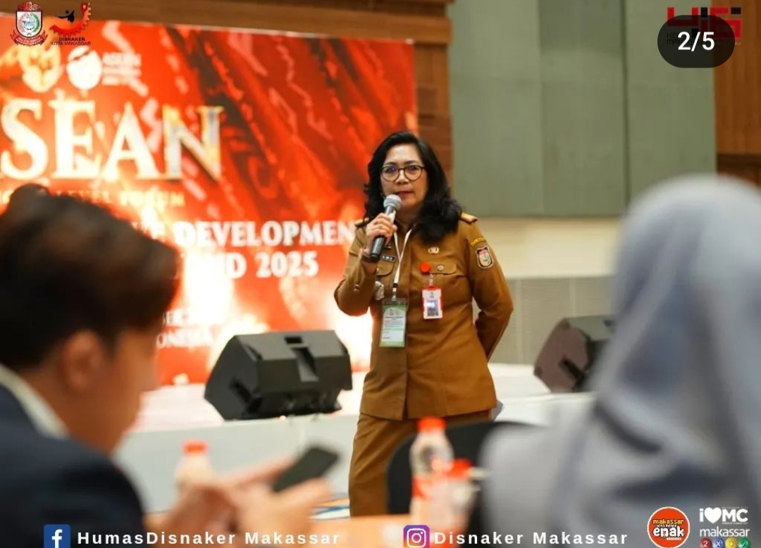 BN Online, Makassar—Kepala Dinas Ketenaga Kerjaan Kota Makassar, Nielma Palamba, SH, M. AP, berkesempatan tampil dan memaparkan praktik baik penyelenggaraan Unit Layanan Disabilitas (ULD) Ketenagakerjaan Kota Makassar pada ASEAN High Level Forum (AHLF) on Disability-Inklusife Development and partnership beyond 2025 di Four Point Hotel Makassar, Selasa (10/10/2023).