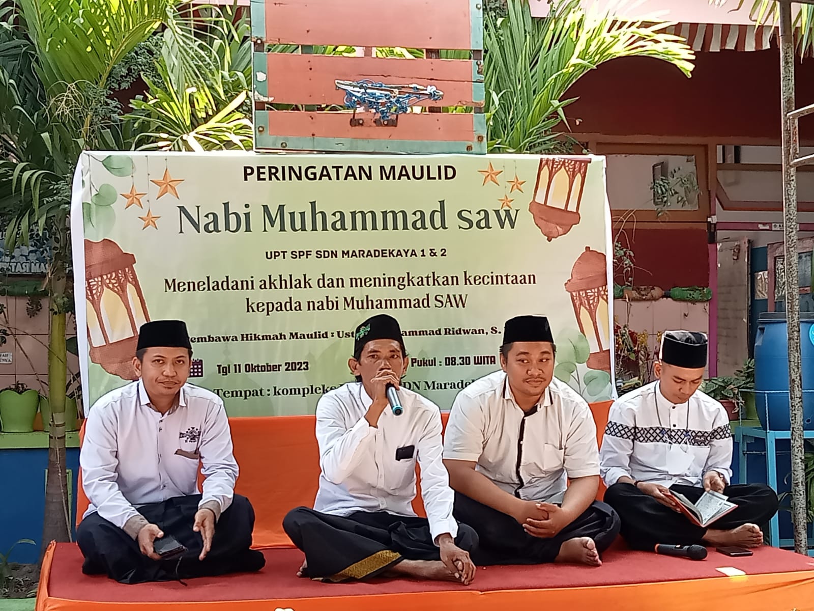 Kepala UPT SPF SDN Maradekaya II, Drs. Sudin, S. Pd mengatakan peringatan Maulid Nabi Muhammad SAW tersebut, dengan tema Menaladani Akhlak dan Meningkatkan Kecintaan Kepada Nabi Muhammad SAW.