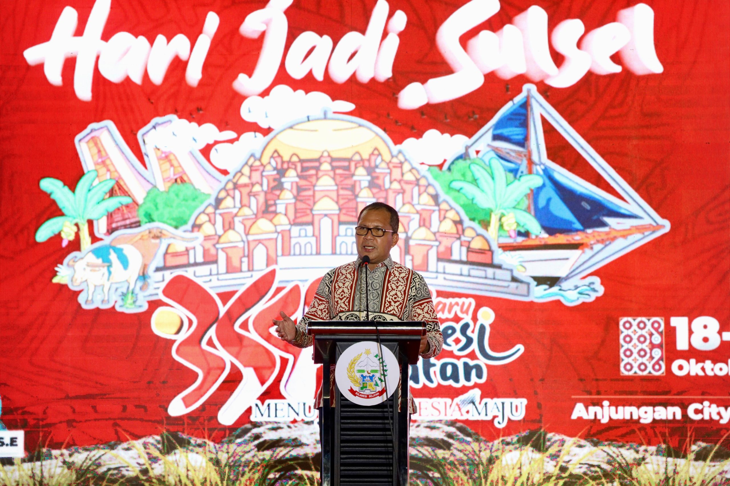 Hal itu ia sampaikan saat memberikan Welcome Speech di Malam Pembukaan Pentas Seni Budaya Rangkaian HUT Sulsel ke-354, di Anjungan City Of Makassar, Rabu (18/10/2023) malam.