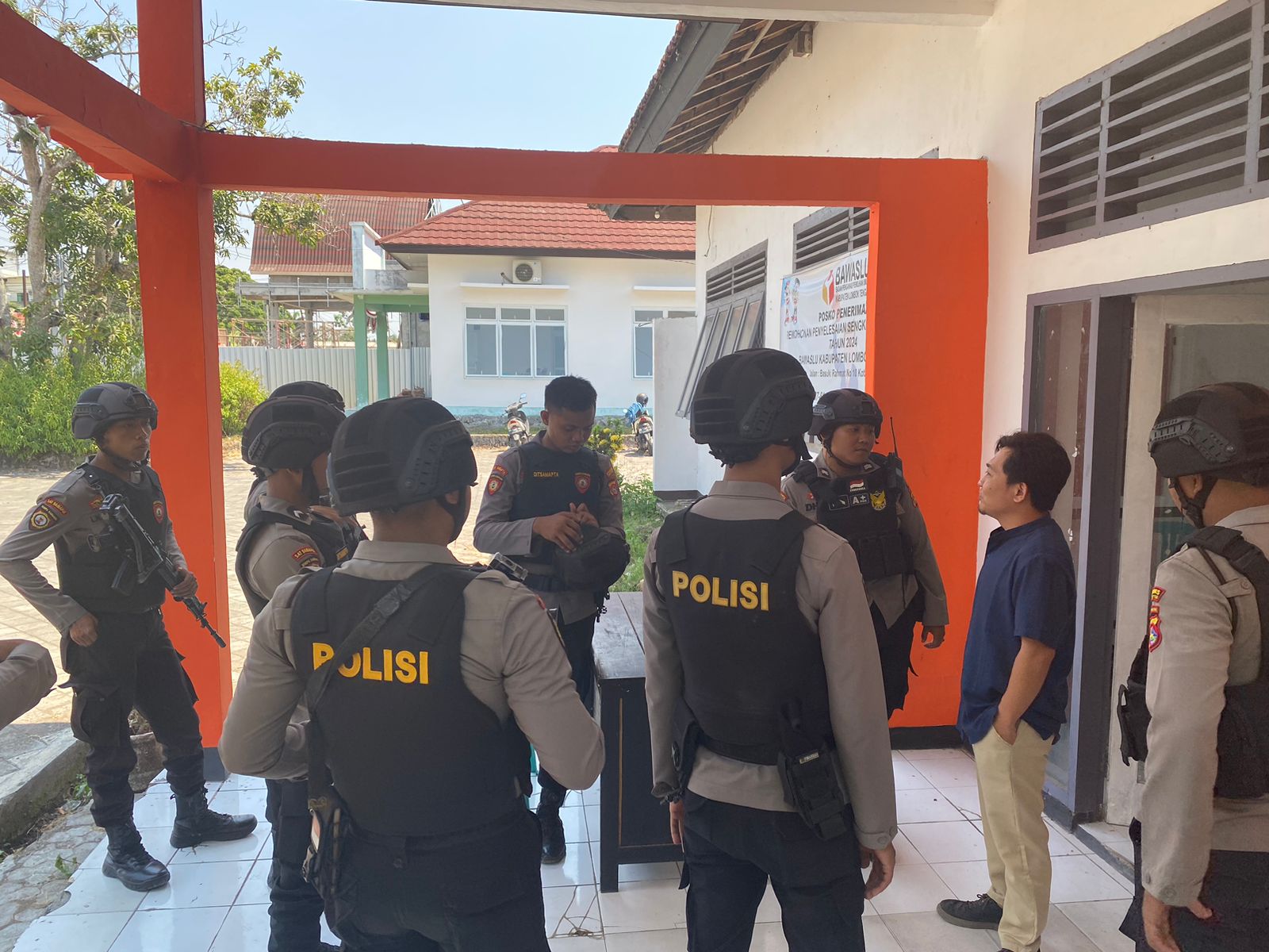 Lombok Tengah (NTB) – Personil Polres Lombok Tengah yang terlibat dalam Operasi Mantap Brata (OMB) 2023-2024 melaksanakan giat patroli di kantor Komisi Pemilihan Umum (KPU) dan Kantor Bawaslu Kabupaten Lombok Tengah, Sabtu (21/10).