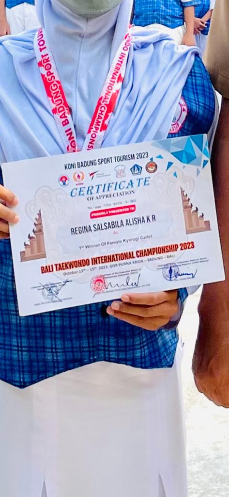 Dimana peraihan prestasi ini melalui pertandingan Female Kyorugi Cadet Bali Taekwondo International Championship 2023 menyabet juara 1 diselenggarakan pada tanggal 13 – 15 Oktober 2023.