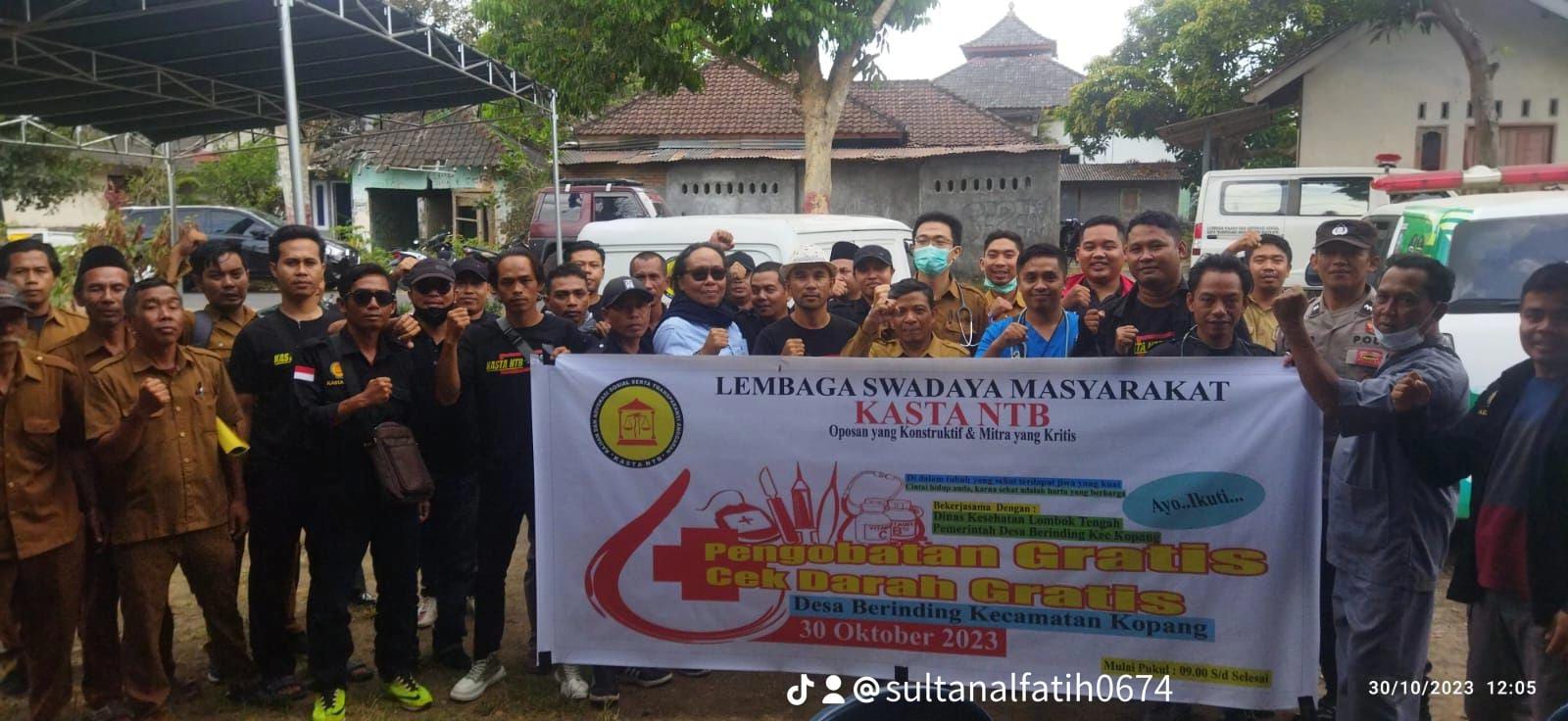 Bidik Nasional . Id – Lombok Tengah – Gandeng Dinas Kesehatan Lombok Tengah, Senin 30 Oktober 2023, Divisi Sosial LSM Kasta NTB gelar pengobatan gratis untuk masyarakat yang di pusatkan di Desa Brinding Kecamatan Kopang Lombok Tengah NTB.