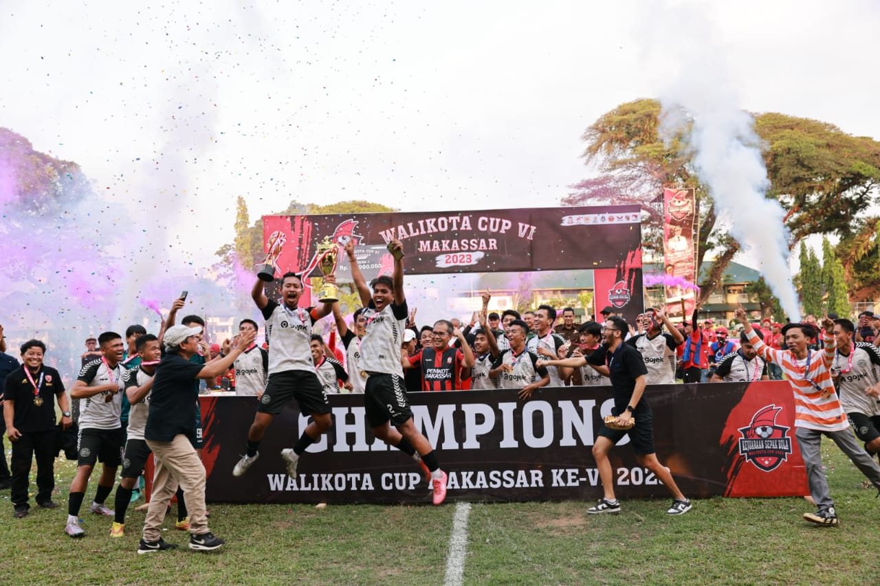 BN Online, Makassar,- Wali Kota Makassar Moh Ramdhan Pomanto menyerahkan hadiah Rp50 juta, piala bergilir dan satu piala bagi sang juara Wali Kota Cup ke-IV 2023, Mitra Gardan FC, di Lapangan Hasanuddin, Rabu, (8/11/2023) sore tadi.