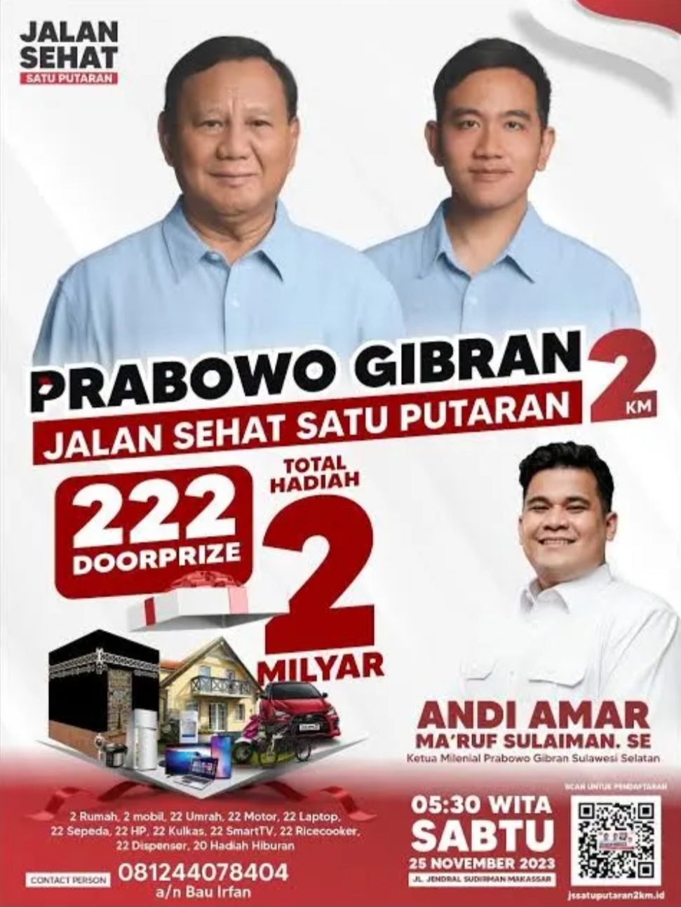 BN Online, Makassar,- Wali Kota Makassar Moh Ramdhan Pomanto dituding menghalangi kegiatan Jalan Sehat Satu Putaran 2 KM Prabowo Subianto dan Gibran Rakabuming Raka di Makassar.