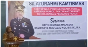 Kegiatan yang dilaksanakan di Aula Kantor Camat Manggala dihadiri langsung Kapolrestabes Makassar, Kombes Pol Mokhamad Ngajib.