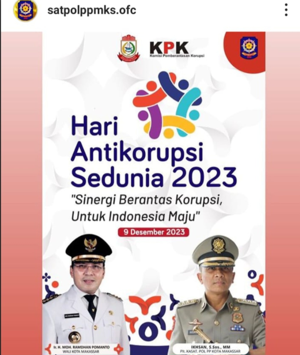 BN Online, Makassar—Kasat Pol PP Ikhsan.S.Sos,.MM menyampaikan Sambutannya kepada jajaran Staf satpol PP Korupsi merupakan kejahatan luar biasa yang merugikan banyak pihak. Untuk menumbuhkan kesadaran publik terkait bahaya laten korupsi, ditetapkanlah Hari Antikorupsi Sedunia (Hakordia) setiap 9 Desember.