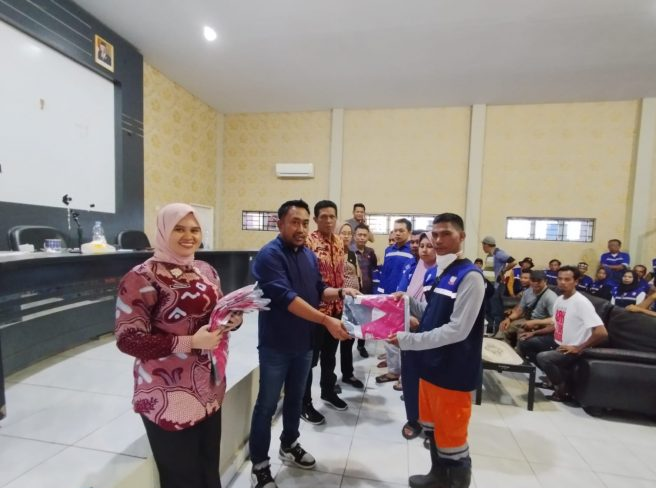 Selain itu Andi Anshar membagikan kelengkapan bekerja bagi para petugas kebersihan demi untuk menunjang keamanan dan kelengkapan dalam bekerja.(**)
