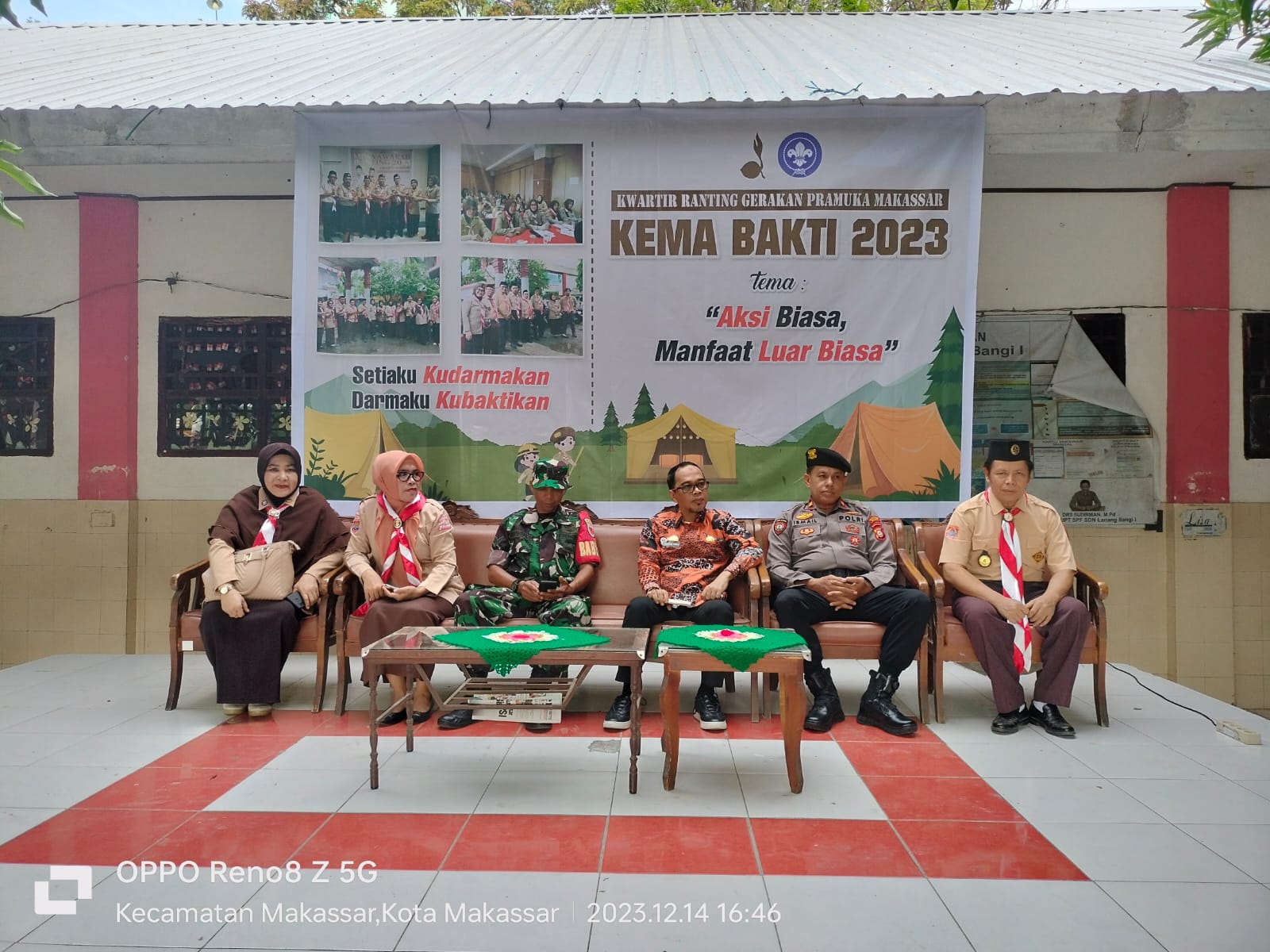 BN Online, Makassar — PLT Camat Makassar, Harun Rani bersama sekcam Makassar lmenghadiri kegiatan Kemah Bakti 2023 Kwartir Ranting Gerakan Pramuka Makassar di halaman UPT SPF SDN Lariang Bangi I Makassar, Kamis (14/12/2023).