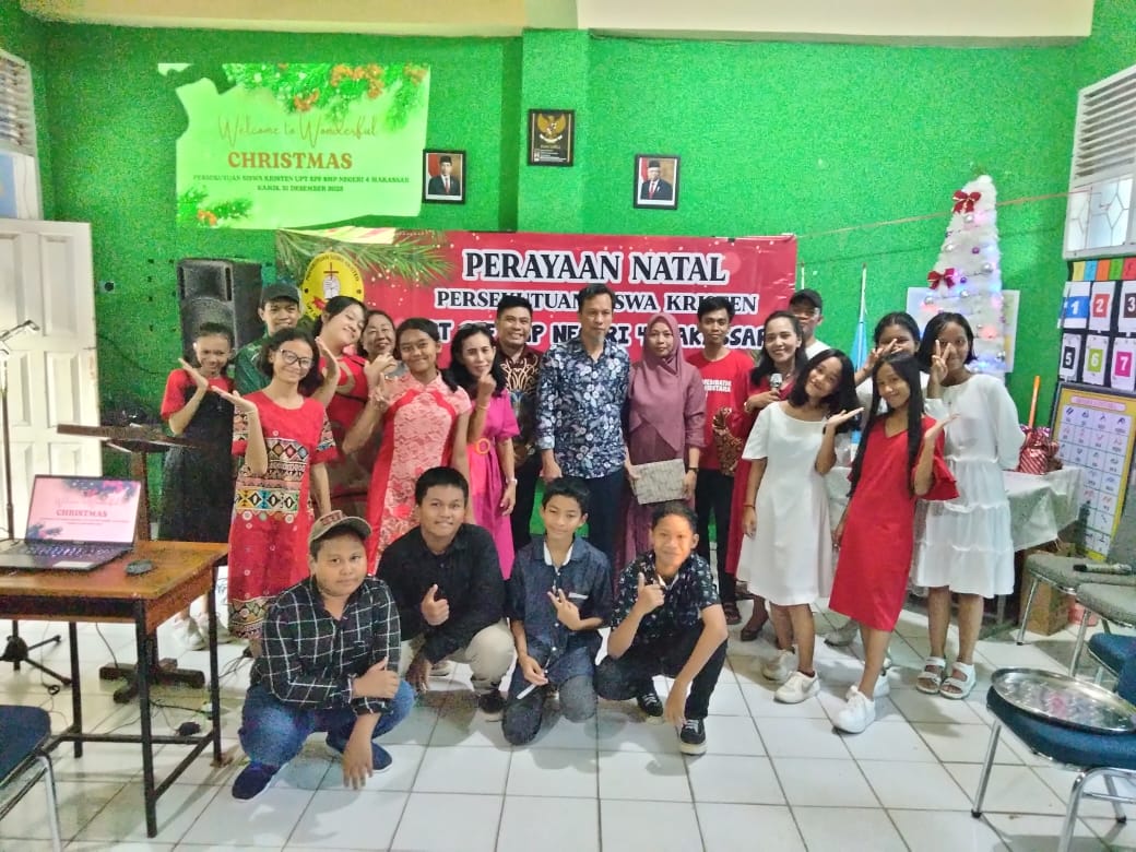 BN Online, Makassar–-Dalam perayaan Natal kali ini, Persekutuan Siswa Kristen UPT SPF SMP Negeri 4 Makassar mengangkat sub dengan tema “Tuhanku Mulia dan Memberiku Damai Sejahtera.” Acara yang diadakan dengan penuh sukacita ini menyajikan berbagai kegiatan, mulai dari ibadah syukur, drama Natal, hingga pawai obor kecil yang menerangi malam.