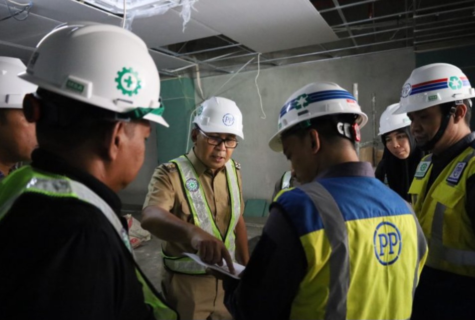 BN Onlime, Makassar—Wali Kota Makassar Moh Ramdhan Pomanto bersama Pj Sekda Firman Hamid Pagarra dan Ketua TP PKK Makassar Indira Yusuf Ismail kembali meninjau progres pengerjaan Makassar Government Center (MGC), Selasa (13/2/2024).