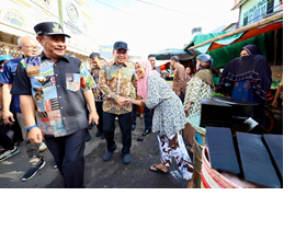 BN ONLINE MAKASSAR–Wali Kota Makassar, Moh Ramdhan Pomanto, bersama mendampingi Penjabat (Pj) Gubernur Sulawesi Selatan, Bahtiar Baharuddin, melakukan peninjauan harga komoditi di Pasar Terong, Kamis (15/2/2024).