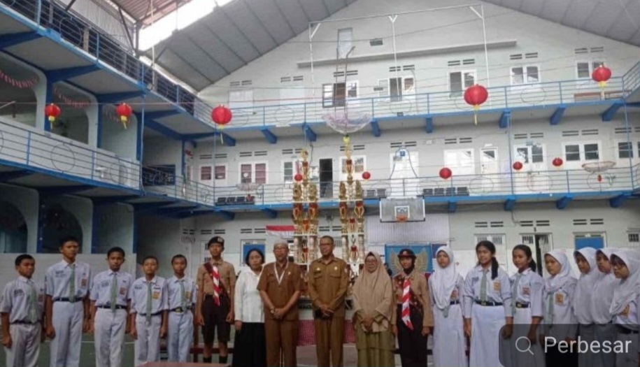 Sebagai juara bertahan, UPT SPF SMPN 5 Makassar menyerahkan Piala Bergilir ke Pangkalan UPT SPF SMPN 12 Makassar, Senin (26/02/2024).