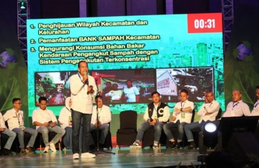 BN Online, Makassar—Camat Tallo, Ramli Lallo memaparkan sejumlah inovasinya dalam kegiatan Rapat Koordinasi Khusus (Rakorsus) Pemkot Makassar di Four Points, Senin (26/2/2024).