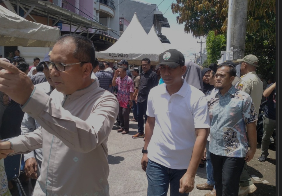 BN Online, Makassar—Kepala Dinas Koperasi dan UKM Kota Makassar Muhammad Rheza, bersama Jajaran Pejabat Lingkup Pemkot Makassar mendampingi Wali Kota Makassar, Ramdhan Pomanto, Pj Gubernur Sulsel dan Pj Sekprov Sulsel meninjau Gerakan Pangan Murah (GPM) di sejumlah titik di Kota Makassar.