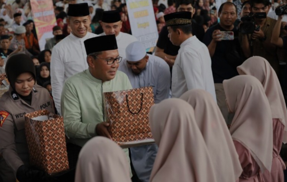 BN Online, Makassar–-Wali Kota Makassar Moh Ramdhan Pomanto mengikuti buka puasa bersama ribuan anak yatim se-Kota Makassar yang merupakan inisiasi Kepala Kepolisian Daerah Sulsel Irjen Pol Andi Rian R Djajadi.