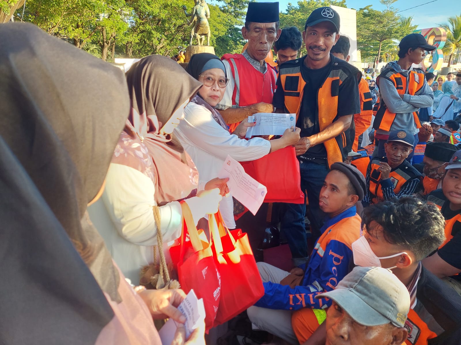 BN Online, Makassar—Pemerintah Kota Makassar menggelar buka puasa bersama petugas kebersihan.kepala sekolah, dan guru SD-SMP se-Kota Makassar pada Jumat (5/4/2024) di Anjungan Pantai Losari, Makassar.