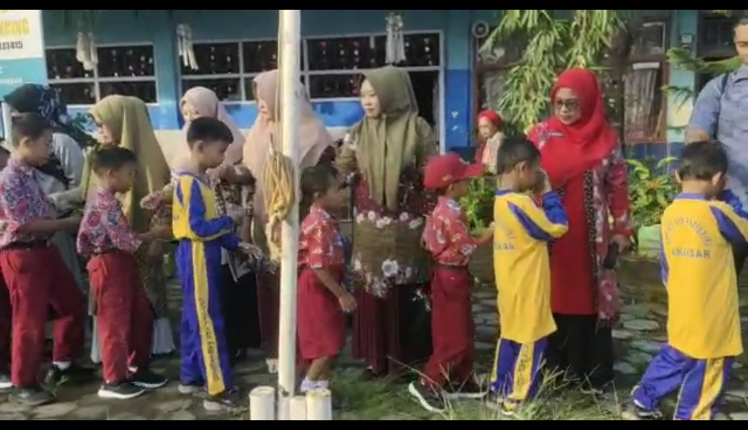 “Siswa siswi mulai dari kelas 1 hingga kelas 6 berbaris rapi, kemudian maju satu persatu secara bergantian menyalami kepala sekolah, guru-guru dan tenaga kependidikan,” kata Andi Etty Cahyani.