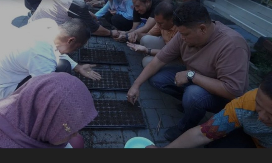 BN Online, Makassar–-Camat Tamalate, H Emil Yudiyanto Tadjuddin, didampingi Kasubag Kepegawaian, Kepala Seksi Ekbang, Kepala Seksi Kesra, Kepala Seksi Trantib Kecamatan Tamalate memimpin langsung penanaman benih cabe yang diikuti oleh jajaran Staf ASN dan Laskar Pelangi Kecamatan Tamalate bertempat di Halaman Kantor Camat Tamalate. Jumat, (26/04/2024).