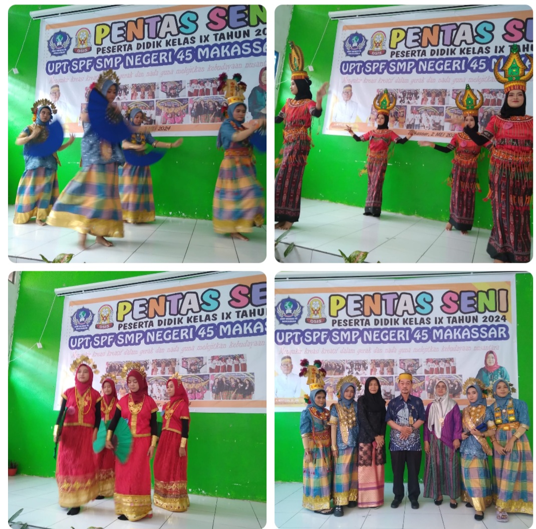 “Peserta didiknya semua hebat dan semua bisa tampil. Mampu mengubah pola pikir yang kurang benar membatasi bakat siswa,” tutup Kepala UPT SPF SMPN 45 Makassar, Hj. Hamriah, S. Pd, M. Pd,.