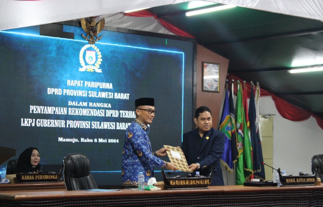 Setelah pelaporan hasil rekomendasi terkait LKPJ Gubernur 2023, acara dilanjutkan dengan Penandatanganan Berkas Rekomendasi dari DPRD Sulbar terhadap LKPJ Gubernur Sulbar.