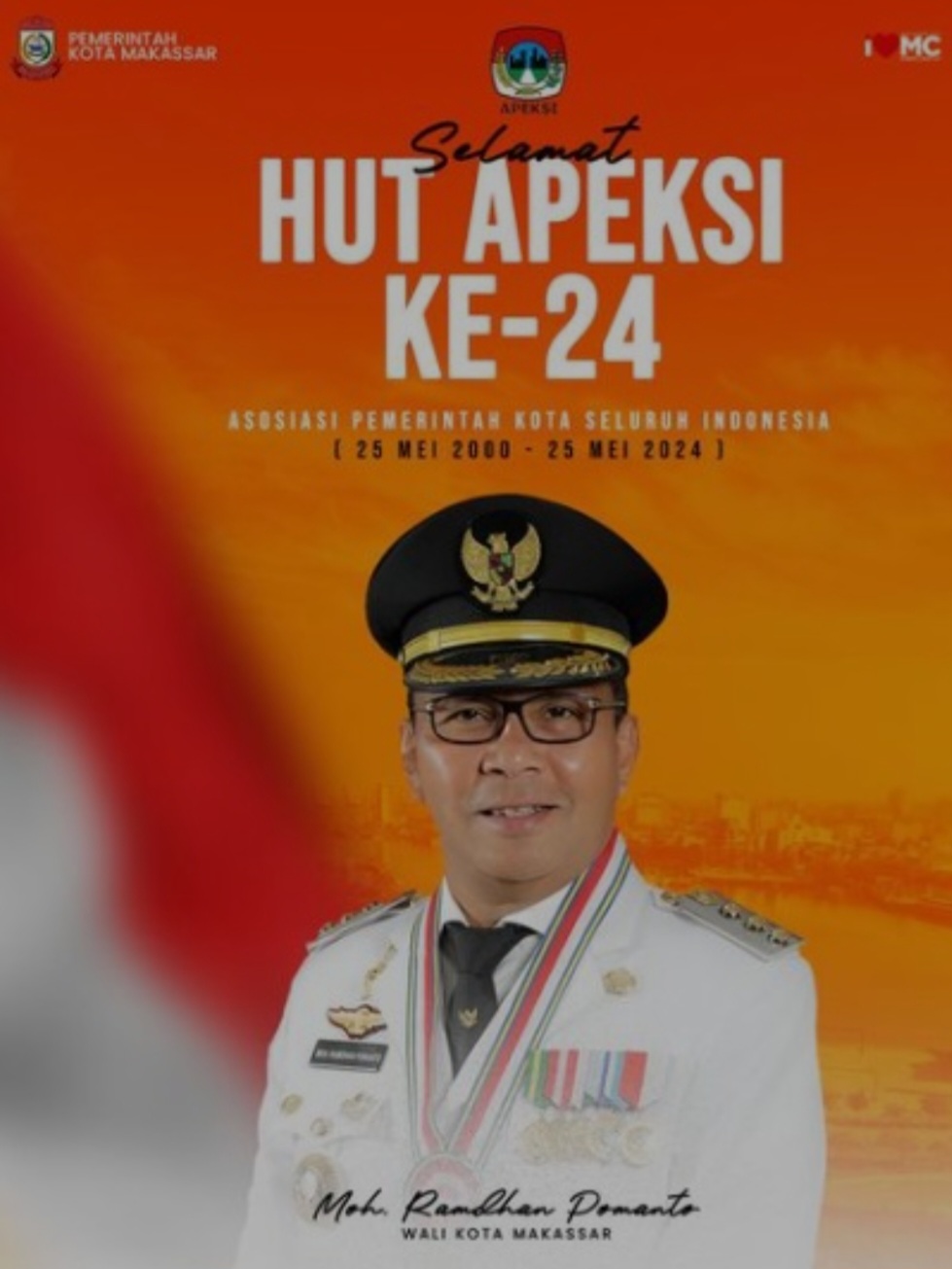 “Selamat HUT APEKSI Ke-24! Asosiasi Pemerintah Kota Seluruh Indonesia! 25 Mei 2000 – 25 Mei 2024,” tulis akun media sosial Pemkot Makassar.