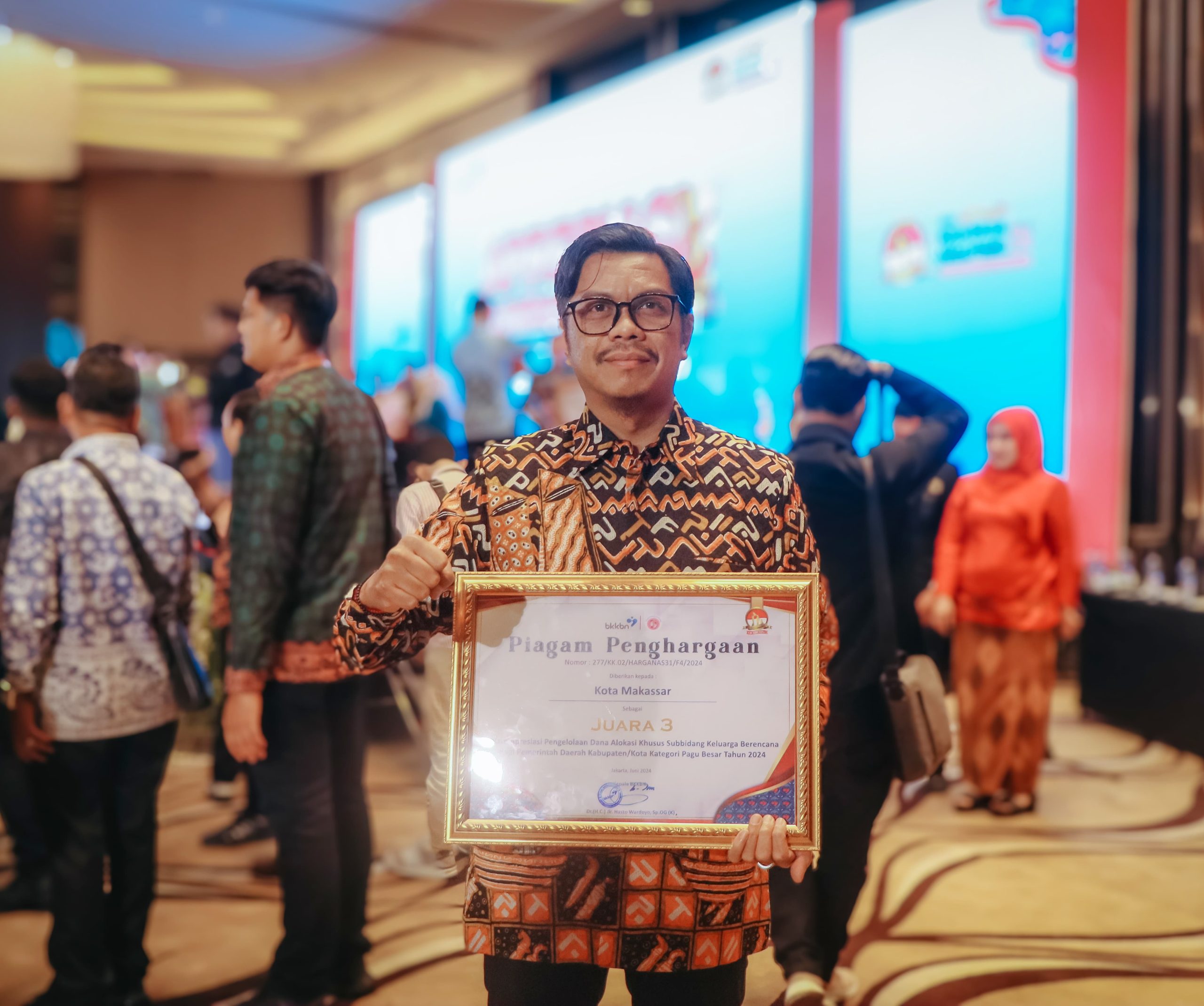 Penghargaan ini diterima langsung oleh Pj Sekda Makassar, Firman Hamid Pagarra mewakili Wali Kota Makassar, Moh. Ramdhan Pomanto yang secara simbolis diberikan langsung oleh Kepala BKKBN, Dr. dr. Hasto Wardoyo di Hotel PO Semarang, Rabu (26/06/2024).