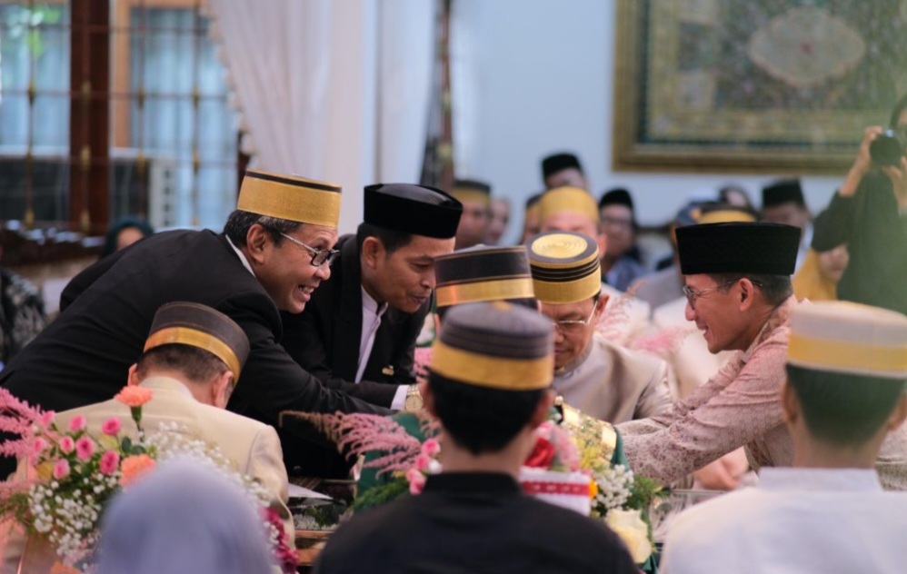 BN Online, Makassar-–Wali Kota Makassar Moh Ramdhan Pomanto bersama Menteri Pariwisata dan Ekonomi Kreatif (Menparekraf) Sandiaga Salahuddin Uno menjadi saksi pernikahan pasangan Afifah Rifa Farhana dan Andi Farhan Fachreza Putera, Minggu (30/6).