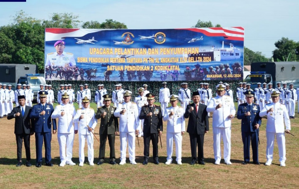 BN Online, Makassar -PJ. Sekda Makassar, Firman Hamid Pagarra menghadiri upacara pelantikan dan penyumpahan siswa Pendidikan Pertama Tantama (Diktama) PK TNI AL angkatan XLIV Gelombang, di Mako lapangan upacara Satdik-2 Kodiklatal, Jumat (12/07/2024).