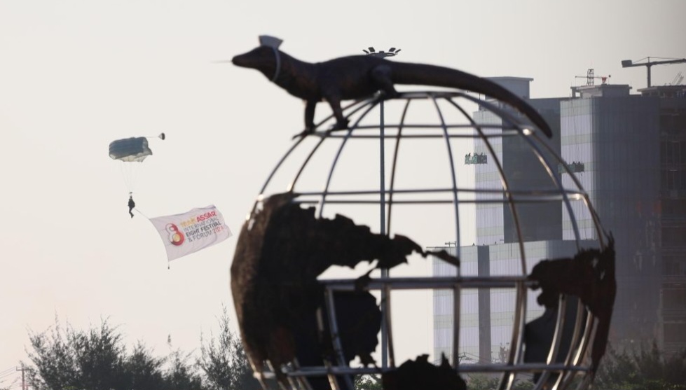BN Onkine, Makassar—Pesawat Boeing 737-200 dari Skadron Udara 5 Lanud Sultan Hasanuddin turut menghibur pengunjung Makassar Internasional Eight Festival and Forum (F8), Rabu (24/7/2024) sore.