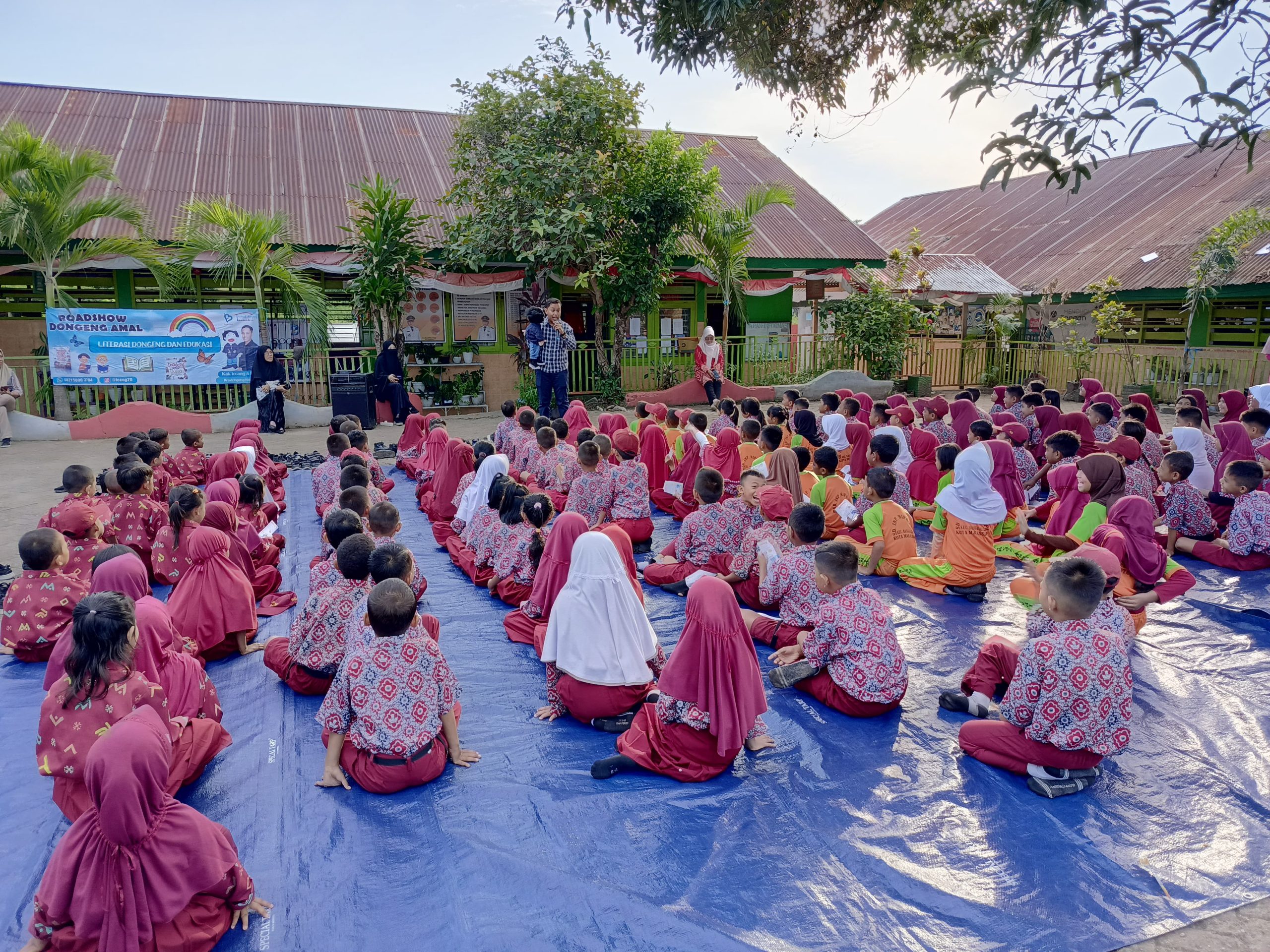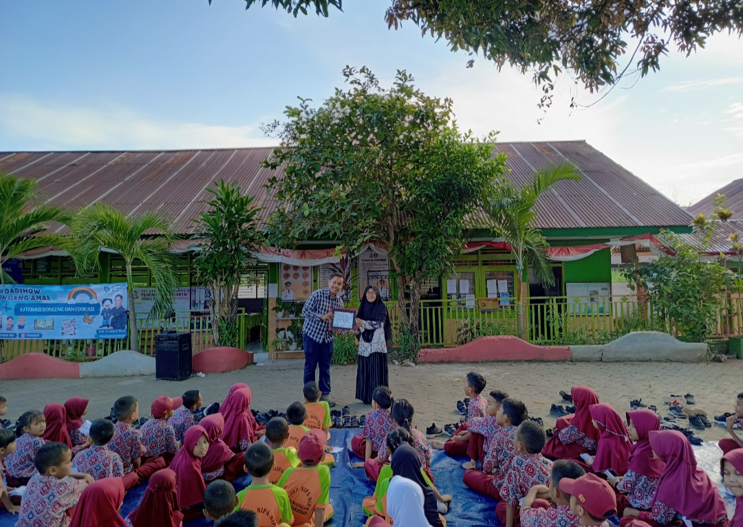 “Anak-anakku semua kegiatan ini adalah sedekah dongeng, jika semuanya berpartisipasi tentunya akan dapat pahala karena hasilnya akan diberikan ke kaum duafa, saya harap semuanya bisa fokus mendengarkan dongengnya”, ucapnya.