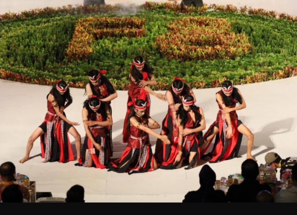 BN Online, Makassar–‘Kabupaten Mamuju, Provinsi Sulbar mempersembahkan Tari Ma’bundu pada sela-sela penutupan Festival F8, di Panggung Utama, Tugu MNEK, Minggu, (28/7/2024).